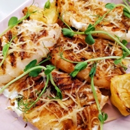 When serving, drizzle with lemon juice and garnish with microgreens.