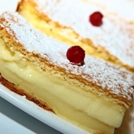 The wonder of this pie lies in the fact that the batter is very liquid, like milk, and during baking, it miraculously separates into three parts — a bottom crust, filling, and a top delicate sponge cake!