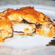 Tender Pork with Mushrooms in Cheese Sauce