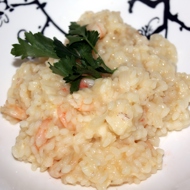 Sauté the shrimp and chopped shallot with the rice for a couple of minutes.