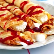 They can be eaten with jam, and children can fill them with ice cream. They can be drizzled with raspberry syrup. This recipe yields just enough for one serving.