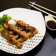 Serve the chicken in whole pieces or sliced diagonally into strips and skewered. Accompany with rice as a side dish.