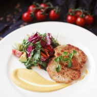 Serve the patties with salad and sauce poured into a small bowl.