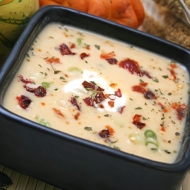 Reheat, squeeze the juice of two limes into the soup. Ladle the soup into bowls, place a spoonful of coconut milk in the center of each, and sprinkle with finely chopped chili on top.