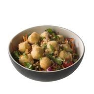 The essence of this salad lies in the combination of crispy fried tofu and thinly sliced carrots, cucumbers, and red onion, all mixed with a spicy Asian-style dressing featuring ginger, fish sauce, sesame oil, chili, and a generous handful of mint and cilantro. This is a perfect example where the tofu doesn't pretend to be anything else; it stands out as a pure protein product with a luxurious silky texture. However, the real star of the salad is the dressing—transforming a handful of ordinary garden vegetables into an intriguing and exotic dish for the palate. The level of spiciness from the fiery chili and the saltiness from the fish sauce is left to the chef's discretion.