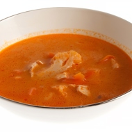 Break the cauliflower into small florets and add them to a pot with the sautéed mixture. Pour in the broth, and add the chicken meat and rinsed rice. Cook until the rice is done.