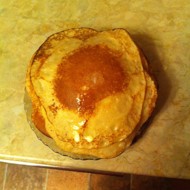 Heat the pan well (a crepe pan is ideal), pour in a little vegetable oil, and spread the batter in the pan. Flip it over, place it on a plate, and spread a piece of butter on top. Continue cooking until the batter is finished.