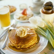 Place the finished crepe on a plate and spread a small amount of butter on top. Continue to cook the crepes until all the batter is used. Stack the crepes, spreading butter on each one.