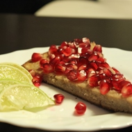 Thin pomegranate pie with lime glaze