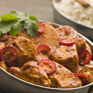 Cut each chicken breast into 5 long strips. In a bowl, mix the yogurt and tikka masala, then add the chicken and stir to coat. Cover with plastic wrap and refrigerate for 4 hours or overnight.