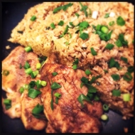 Add the finely chopped green onions and remove from heat. Serve drizzled with the sauce from the skillet.