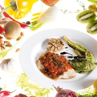 Serve the cooked fish with garlic, sautéed romaine lettuce, and sauce.