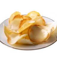 Place in a preheated oven at 356°F and bake for 5-6 minutes. As soon as the edges start to brown, remove them. While the cookies are still warm, take a rolling pin and gently, without removing them from the parchment, roll them over the pin. Be careful not to break them. Allow the cookies to set in the curved position and transfer them to a serving dish.