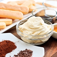 Place the mascarpone cheese in a separate bowl and mash with a wooden spatula. While continuing to beat the yolks, gradually add the mascarpone. Keep beating the mixture until completely homogeneous. Note: use the lowest speed, it's better to fold with a spatula rather than a mixer.