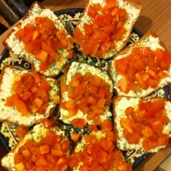 Spread the cottage cheese mixture on the toasted slices of bread and top with the warm tomatoes.