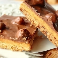 Spread the mixture in an even layer. Allow it to cool. Once cooled, melt the chocolate in a double boiler. Place the nuts on the mixture, pour the melted chocolate over everything, and put it in a cool place (I usually leave such things in the refrigerator overnight).