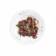 Return the tofu to the skillet, add the green onions, and heat everything together for two minutes. The tofu should be coated and infused with the glossy caramel sauce.