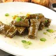Tokosh: Cut a circle from each grape leaf, place the prepared filling inside, and wrap it like small cabbage rolls. Layer the prepared tokosh in a pot, pour in the chicken broth, add butter, and a little more salt and pepper. Cook until fully done.