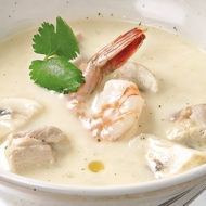 Fish sauce (not recommended for the faint-hearted to read about what it is and how it's made) — added directly to the bowl. The richness of flavor is adjusted with fish sauce and a special dried Tom Kha mix. The spiciness is adjusted with Tom Yum paste (I wouldn't recommend more than 70 grams) and chili peppers (the earlier you add them, the spicier it will be; if you chop them finely and add them when you throw in the chicken, you'll achieve maximum spiciness. Enjoy your meal!