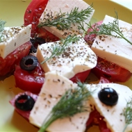 Slice the olives and feta cheese. Tear the dill.