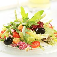 Combine with chopped tomatoes, olives, chopped basil, marjoram, and croutons, season with salt to taste, and mix well. Let it sit at room temperature for 15 minutes to allow the croutons to absorb some of the dressing.