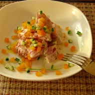 Tomato, cucumber, and bell pepper salad with sour cream dressing