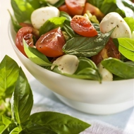 Tomato, mozzarella, and basil salad with mustard dressing.
