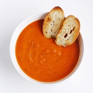 In a large pot over medium heat, sauté the onion and garlic for 4–5 minutes. Add 1 tablespoon of basil and all the roasted tomatoes, peppers, and the juices left from them. Stir, then puree with an immersion blender (or carefully transfer the mixture to a regular blender and blend until smooth, then pour back into the pot).
