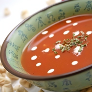 Peel the tomatoes, slice them, and sauté with vegetable oil, salt, and pepper. Add to the broth.