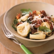 Tortellini with Ham, Arugula, and Grated Parmesan
