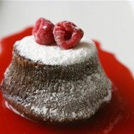 Before serving, place the mold in cold water for a couple of minutes. This is to ensure that the tortino easily separates from the mold. Meanwhile, the dessert should remain hot so that the chocolate inside does not thicken. Pour vanilla sauce over the tortino. Berries and powdered sugar make great decorations.