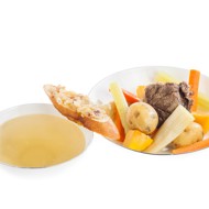 Pot-au-feu is a traditional French stew made with beef and vegetables. At the same time, it is also a soup, as the consistency of pot-au-feu is often not particularly thick. Moreover, it is often eaten in the same way as, for example, shurpa or kufta-bozbash: vegetables separately, broth separately. In other words, both the first and second courses in one serving.