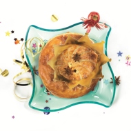 A traditional festive pastry found in all regions of France. This 'King's Galette' is baked from early January until Lent, but in some places, it is served specifically on Christmas, that is, December 25th. Inside the classic galette, a figurine of a bean king is hidden — the person who finds it becomes the king of the evening.