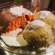 Preheat the oven to 338°F with both top and bottom heating, and bake the fish with the balls for 30-35 minutes.