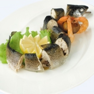 Trout stuffed with shrimp and mushrooms