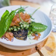 Trout Tartare with Cucumber, Dill, and Grainy Mustard Salsa, Creamy Horseradish Sauce, and Potatoes