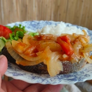 Here we used trout, but any red fish will work well. If you don't have tomato juice, you can dilute tomato paste. Be careful with the salt, as fish seasoning may contain salt. The fish can be served with a fresh vegetable salad and rice, or without a side dish. Cherry tomatoes can be replaced with regular tomatoes — it's not critical.