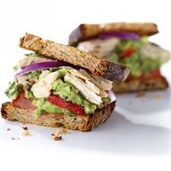 On one half of each toast, place lettuce, tomato slices, onion rings, and avocado puree. Lightly flake the tuna with a fork and place it on top. Cover with the other half of the toast.