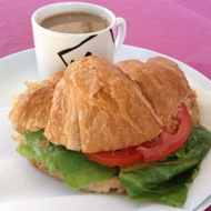 Spread mayonnaise on the croissant, add lettuce leaves, then tuna and tomatoes.