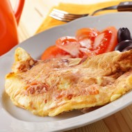 This dish can be served with tomato ketchup, which should be drizzled around the omelette on the plate.