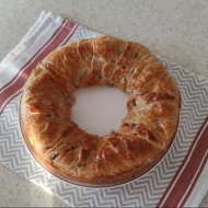 Roll out the dough into a circle larger than the diameter of the baking dish.