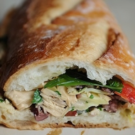 Place the mixture into the ciabatta, press the halves together well, wrap in parchment paper, and take it with you for a picnic or to work!