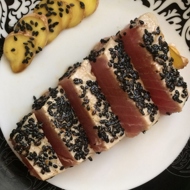 Heat the skillet well and sear the tuna for 1 minute on each side.