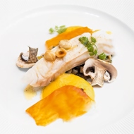 Turbot with Sweet Potato Foam and Mushroom Fricassee
