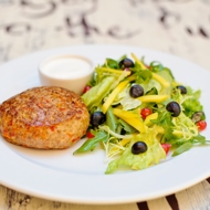 Turkey Burger with Green Salad and Farmhouse Sour Cream