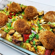 Do the same with the eggplant. Combine the vegetables in a deep baking dish.