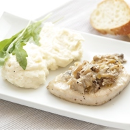 If the cognac hasn't ignited, sprinkle a bit more and carefully tilt the pan towards the flame so that the burner’s flame licks the sauce. If you have an electric stove, light the cognac with a toothpick while tilting the pan. Please exercise caution and keep the pan away from your face. Mashed potatoes or rice make a perfect side dish. In fact, the sauce is quite versatile. If you substitute turkey with beef, it becomes 'Steak Diana'; you can also swap in chicken breast for 'Chicken Diana'. According to Wikipedia, 'Diana' sauce is named not after a princess but after the Roman goddess of hunting.