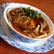 When the turkey is almost ready, add the buckwheat-wheat noodles to the pot. Cook for another 7-10 minutes until the noodles are done.