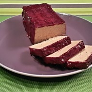 While the pâté is baking, prepare the lingonberry glaze. Soak the gelatin in cold water. Place the berries in a pot, add water, heat to boiling, and cook for about 5 minutes. Then strain the berries through a sieve, add sugar and cognac. After removing the pâté from the oven and letting it cool slightly, add the gelatin to the berry purée (you can warm the berries slightly). Be sure to mix well! Cool to room temperature and pour over the pâté. Refrigerate overnight, or better yet, let the dish sit for a full day.