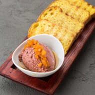 The ingredients change depending on the season. The topping for the pâté should be sweet and sour or sweet, but not cloying. Currently, the restaurant serves quince jam with saffron and elderflower syrup.